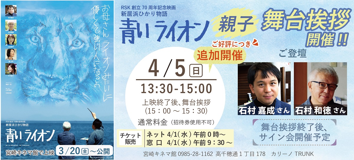 ご好評につき4/5(日)13:30の回上映後、親子舞台挨拶追加開催決定
